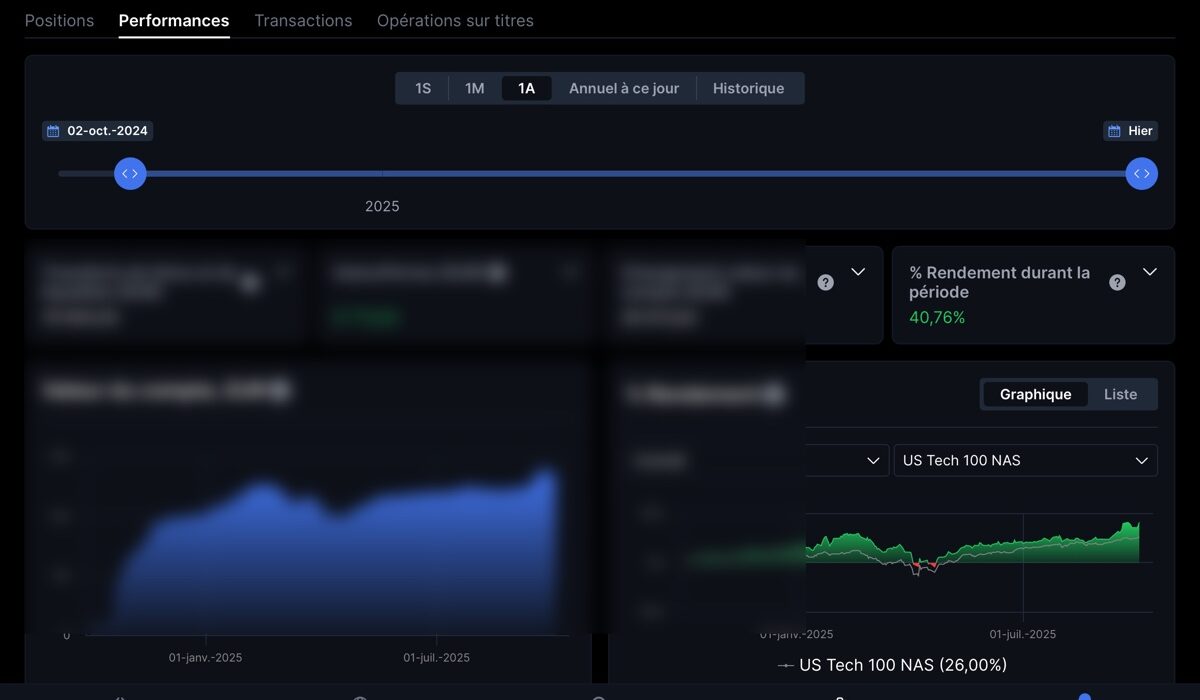 Petit rappel important : la performance sur 12 mois mesure votre gain brut, avant impôts. Mais attention, tant que vous ne vendez pas vos titres, aucune fiscalité ne s’applique. Vos plus-values restent “latentes” et continuent de croître sans être ponctionnées par le fisc.