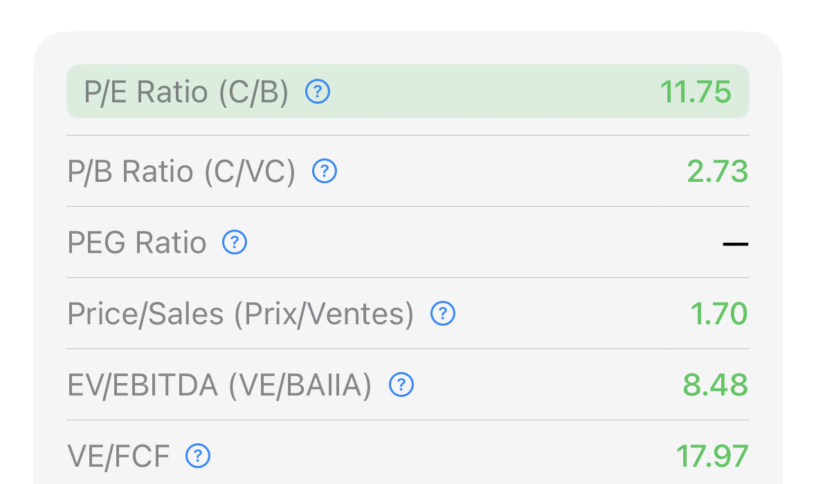 Cette vue me permet de vérifier rapidement d’autres indicateurs importants : le ratio prix/ventes, le ROIC (retour sur capital investi), ou encore le P/B (prix sur valeur comptable). Sans avoir besoin de jongler entre plusieurs sites financiers.