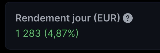 Résultat du jour du compte-titres qui la contient ? +1283€ (+4,87%) en une seule séance. Plus qu’un salaire journalier, proche d’un SMIC mensuel net même. L’effet multiplicateur du stock picking réussi combiné à la taille croissante du portefeuille.
